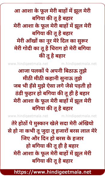 Lyrics of Meri Aasha Ke Phool Meri Bahon Mein Jhul Meri - मेरी आशा के फूल मेरी बाहों में झूल मेरी