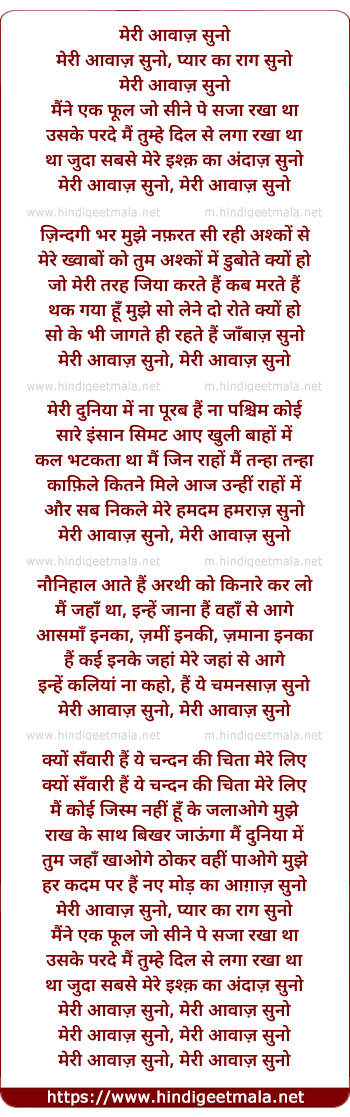 Lyrics of Meri Aavaaz Suno, Pyaar Ke Raaz Suno - मेरी आवाज़ सुनो, प्यार के राज़ सुनो