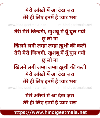 Lyrics of Meri Ankhon Me - मेरी आँखों में