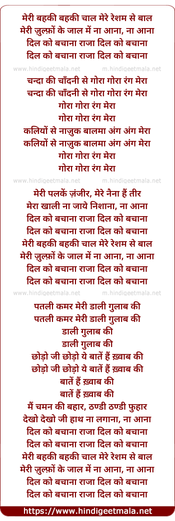 Lyrics of Meri Behki Behki Chaal Mere Resham Se Baal - मेरी बहकी बहकी चाल मेरे रेशम से बाल