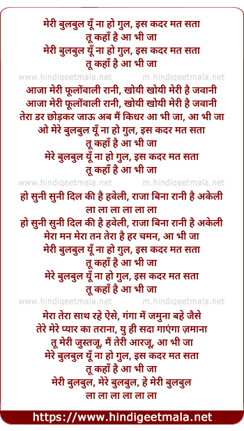 Lyrics of Meri Bulbul Yun Na Ho Gul - मेरी बुलबुल यूँ ना हो गुल