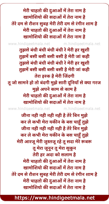 Lyrics of Meri Chahato Ki - मेरी चाहतो की