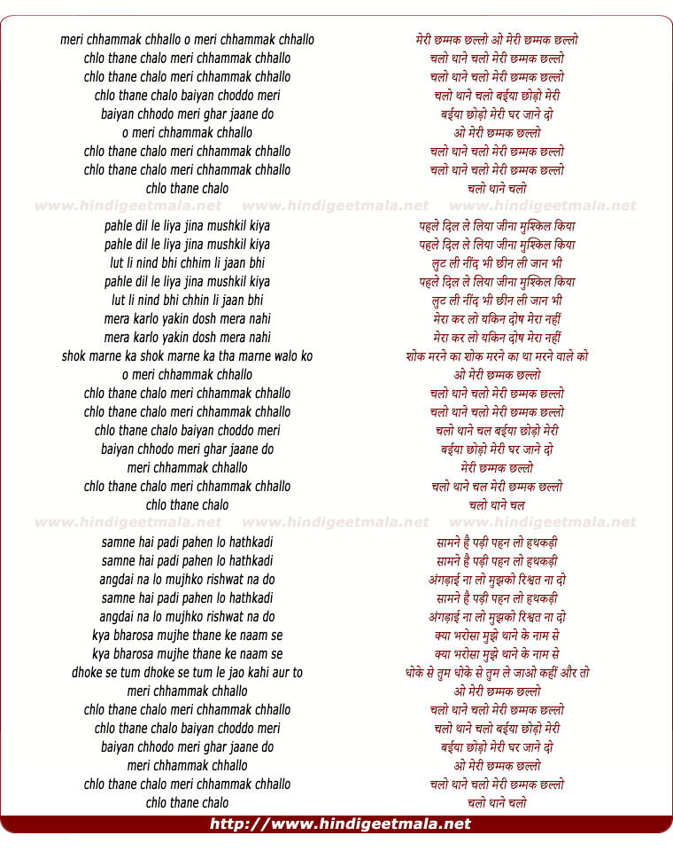 Lyrics of Meri Chhammak Chhallo - मेरी छम्मक छल्लो