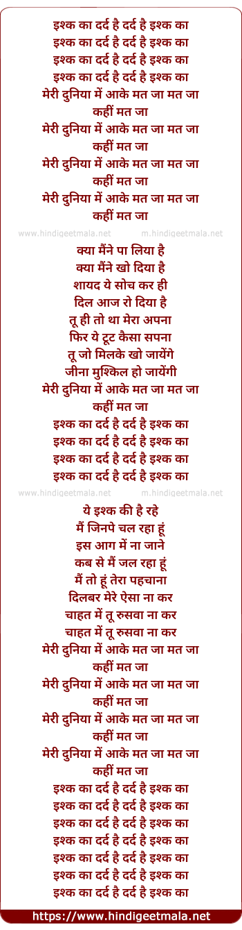 Lyrics of Meri Duniya Me Aake Mat Ja (2) - मेरी दुनिया में आके मत जा