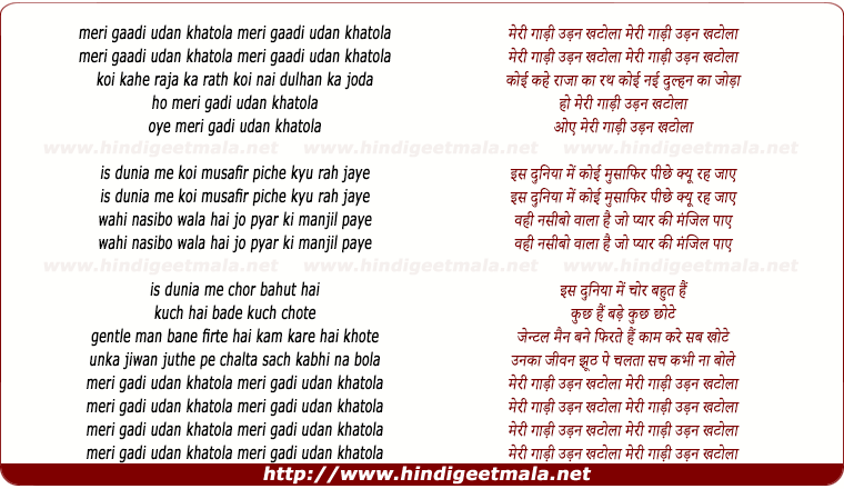 Comments for lyrics of song "Meri Gaadi Udan Khatola"