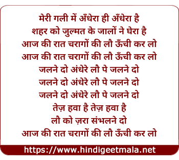 Lyrics of Meri Gali Mein Andhera Hi Andhera Hai - मेरी गली में अँधेरा ही अँधेरा है