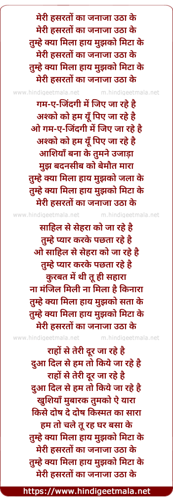 Poetic Translation - Lyrics of Meri Hasaraton Ka - मेरी हसरतों का