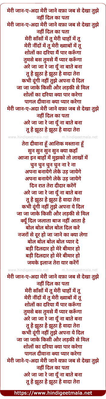 Lyrics of Meri Jaan E Ada - मेरी जान ए अदा