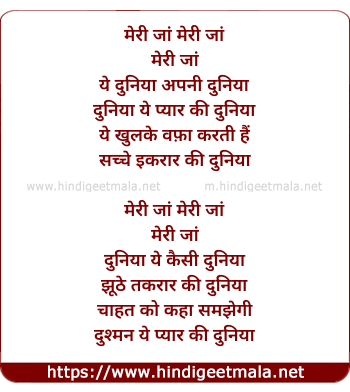 Lyrics of Meri Jaan Meri Jaan - मेरी जान मेरी जान