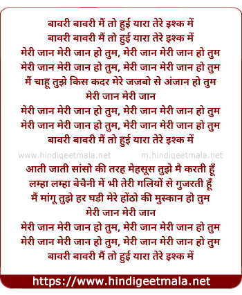 Lyrics of Meri Jaan Meri Jaan Ho Tum - मेरी जान मेरी जान हो तुम