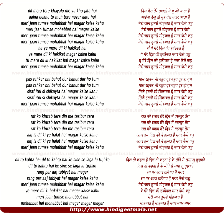 Lyrics of Meri Jaan Tumse Mohabbat Hai - मेरी जान तुमसे मोहब्बत है