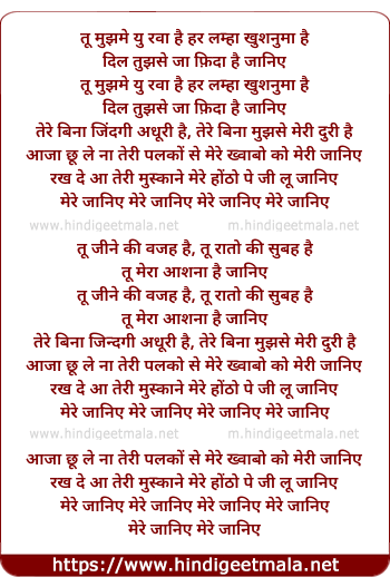 Lyrics of Mere Jaaniye - मेरे जानिये