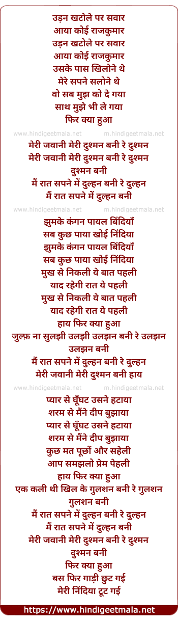 Lyrics of Meri Jawani Meri Dushman Bani Re - मेरी जवानी मेरी दुश्मन बनी रे