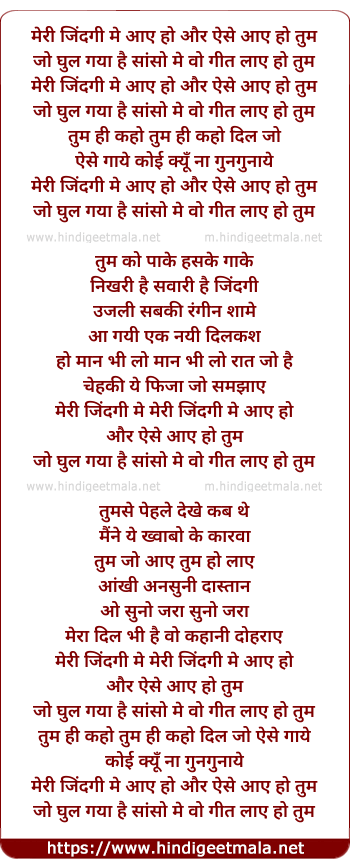 Lyrics of Meri Jindgi Me Aaye Ho Aur - मेरी जिंदगी में आये हो और