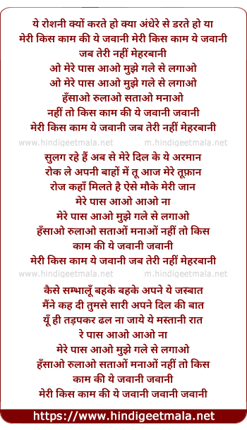 Lyrics of Meri Kis Kaam Yeh Jawaani - मेरी किस काम ये जवानी