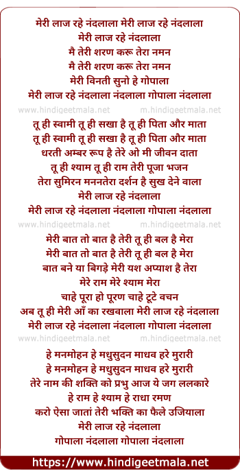 Lyrics of Meri Laaj Rahe Nandlala Main Hu Teri Sharan - मेरी लाज रहे नंदलाला मैं हूँ तेरी शरण