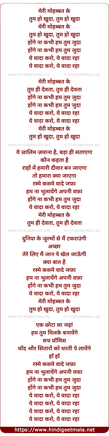Lyrics of Meri Mohabbat Ke Tum Ho Khuda - मेरी मोहब्बत के तू हो खुदा
