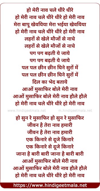 Lyrics of Meri Naav Chale Dhire Dhire - हो मेरी नाव चले धीरे धीरे