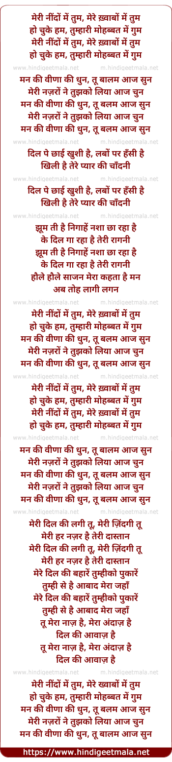 Lyrics of Meri Nindon Me Tum, Mere Khvabo Me Tum - मेरी नींदों में तुम, मेरे ख़्वाबों में तुम