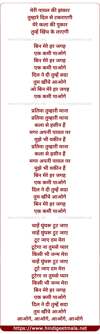 Lyrics of Meri Payal Ki Jhankar - मेरी पायल की झंकार