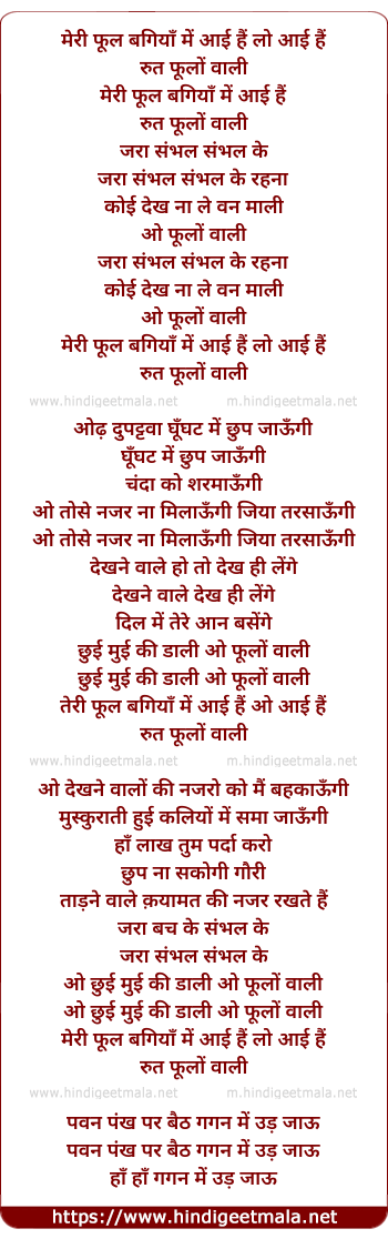 Lyrics of Meri Phool Bagiya Me - मेरी फूल बगियाँ में आई हैं लो आई हैं