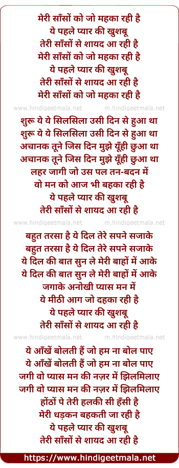 Lyrics of Meri Saanso Ko Jo Mahka Rahi Hai - मेरी साँसों को जो महका रही है
