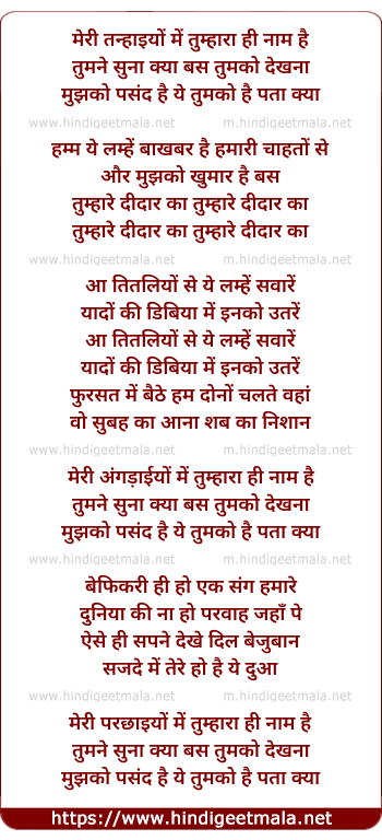 Lyrics of Meri Tanhaiyon Mein - मेरी तन्हाइयों में