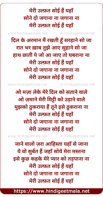 Lyrics of Meri Ulfat Soyi Hai Yahan - मेरी उल्फ़त सोई हैं यहाँ