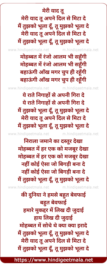 Lyrics of Meri Yaad Tu Apne Dil Se Mita De - मेरी याद तू