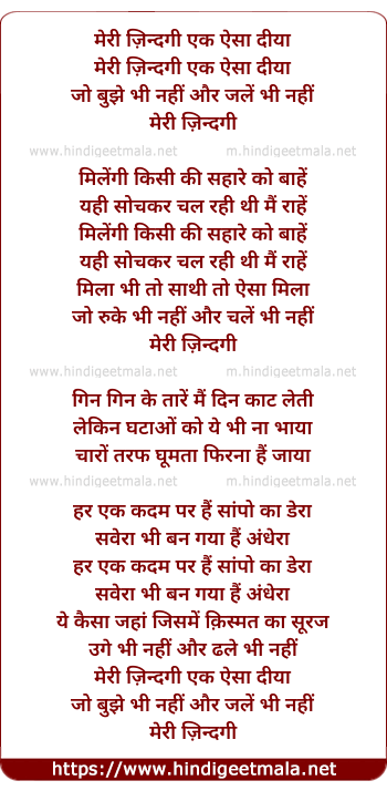Lyrics of Meri Zindagi Ek Aisa Diya - मेरी ज़िन्दगी एक ऐसा दीया