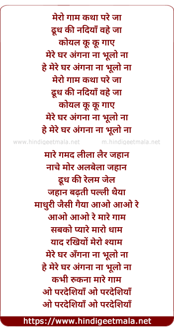 Lyrics of Mero Gaam Katha Pare - मेरो गाम कथा परे