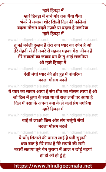 Lyrics of Mhare Hiwda Me Nache Mor Tak Thaiya Thaiya - म्हारे हिवड़ा में नाचे मोर तक थैया थैया