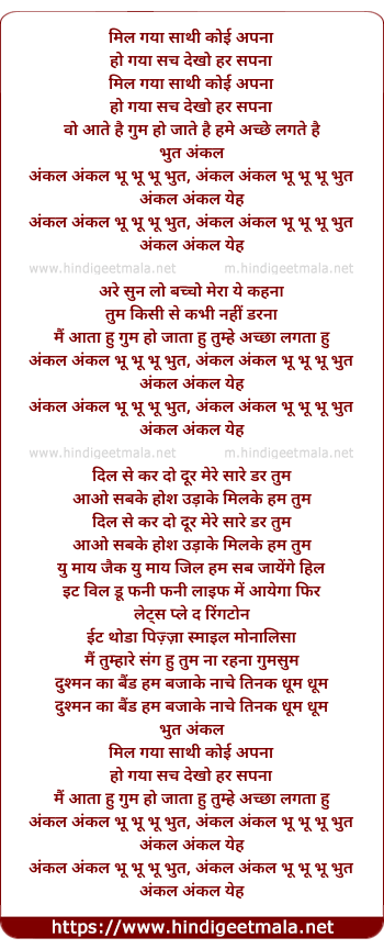 Lyrics of Mil Gaya Saathi Koi Apna, Bhoot Unkle - मिल गया साथी कोई अपना, भूत अंकल