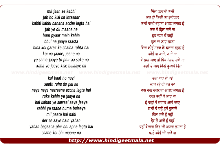 Lyrics of Mil Jaan Se Kabhi - मिल जान से कभी