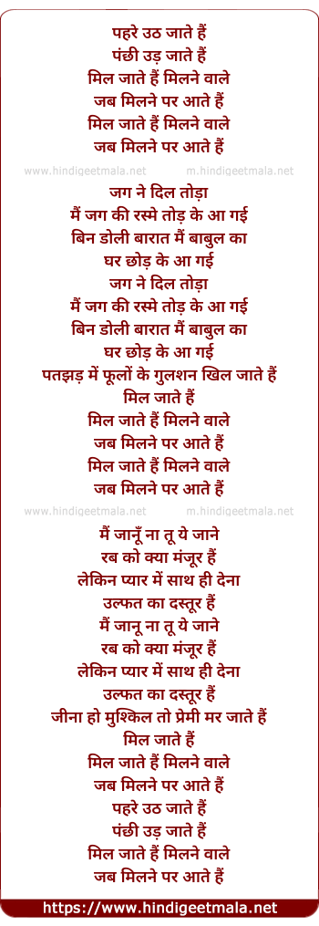 Lyrics of Mil Jaate Hai Milne Wale - मिल जाते है मिलने वाले