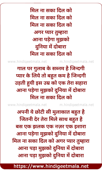 Lyrics of Mil Na Saka Dil Ko Agar Pyar - मिल ना सका दिल को