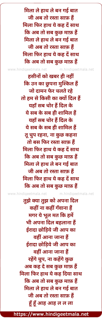 Lyrics of Milaa Le Haath Le Ban Gai Baat - मिला ले हाथ ले बन गई बात