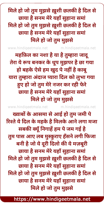 Lyrics of Mile Ho Jo Tum Mujhse - मिले हो जो तुम मुझसे