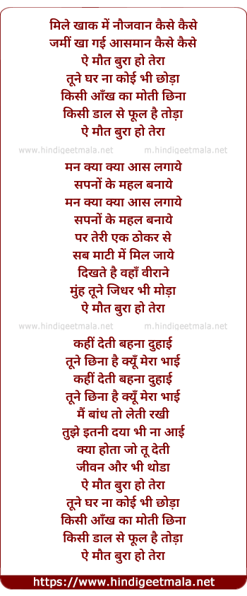 Lyrics of Mile Khak Me Naujawan, Kaise Kaise Jami Kha Gayi Asman - मिले खाक में नौजवान, कैसे कैसे जमीं खा गई आसमान