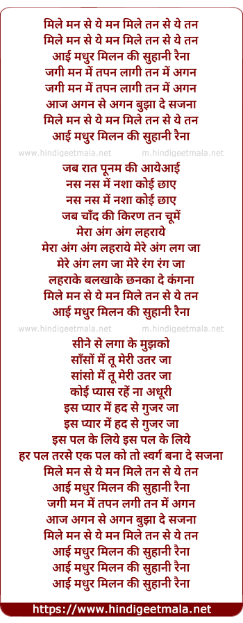Lyrics of Mile Mann Se Yeh Mann - मिले मन से ये मन