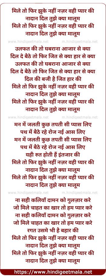 Mile To Phir Jhuke Nahin Nazar Vahi Pyaar Ki - मिले तो फिर झुके नहीं नज़र वही प्यार की