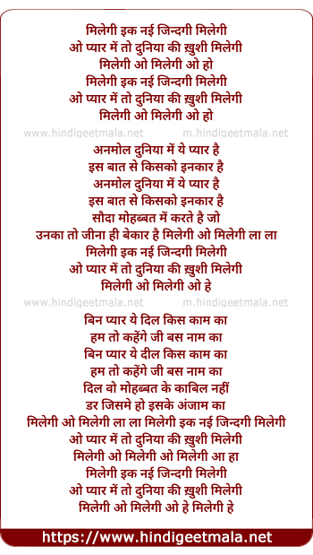 Lyrics of Milegi Ek Nai Zindagi Milegi - मिलेगी इक नई जिन्दगी मिलेगी