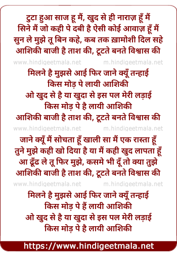 Lyrics of Milne Hai Mujhse Aayi (Mtv) - टुटा हुआ साज हू मैं, खुद से ही नाराज़ हूँ मैं