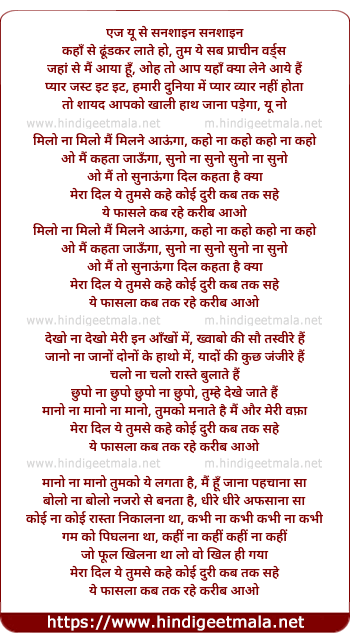 Lyrics of Milo Na Milo Main Milane Aaunga - मिलो ना मिलो मैं मिलने आऊंगा