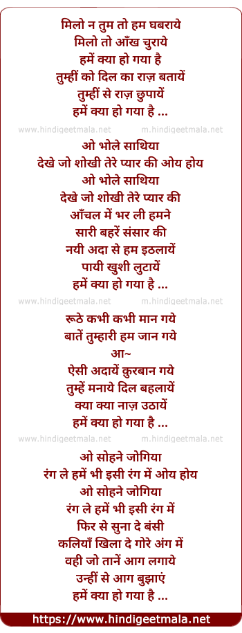 Lyrics of Milo Naa Tum Toh Ham Ghabaraye - मिलो ना तुम तो हम घबराये