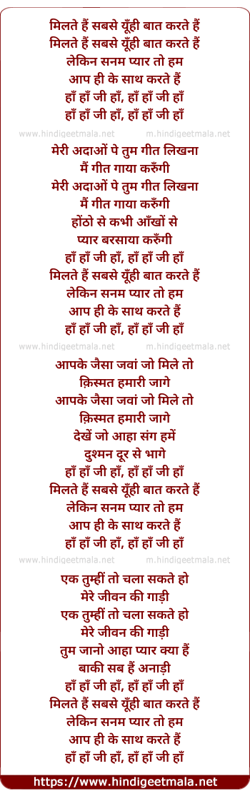 Lyrics of Milte Hain Sab Se (Female) - मिलते हैं सब से