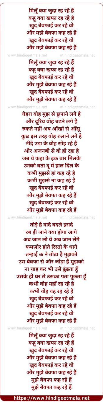 Lyrics of Milu Kya Juda Reh Rahe Hai - मिलूँ क्या जुदा रह रहे हैं