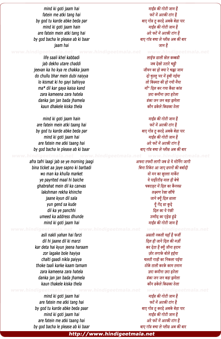 Lyrics of Mind Ki Goti Jaam Hain - माईंड की गोटी जाम है