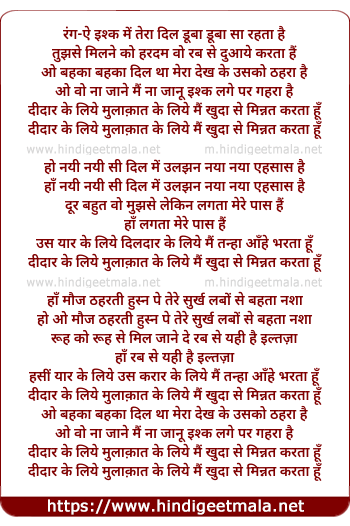 deedar ke liye mulakaat ke liye mai khuda se minnat karta hu
