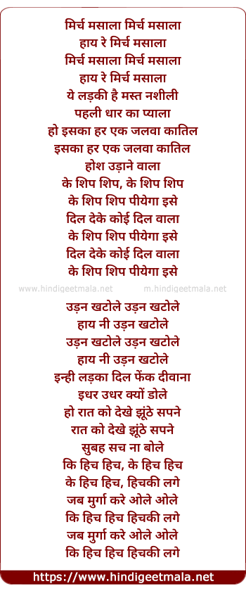 Poetic Translation - Lyrics of Mirch Masala Haye Re - मिर्च मसाला मिर्च मसाला